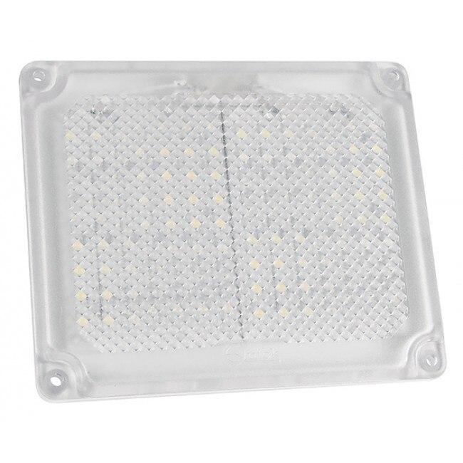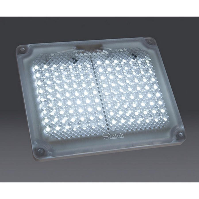 The Action Light is an IP66 recessed LED surface mounted downlight. It has a 13mm square trim composed of plastic plated in white. It is available in a warm white led bulb color.