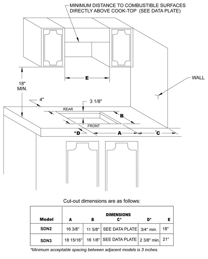 - Cut-Out Dimensions: 18 15/16" length, 16 1/8" width.