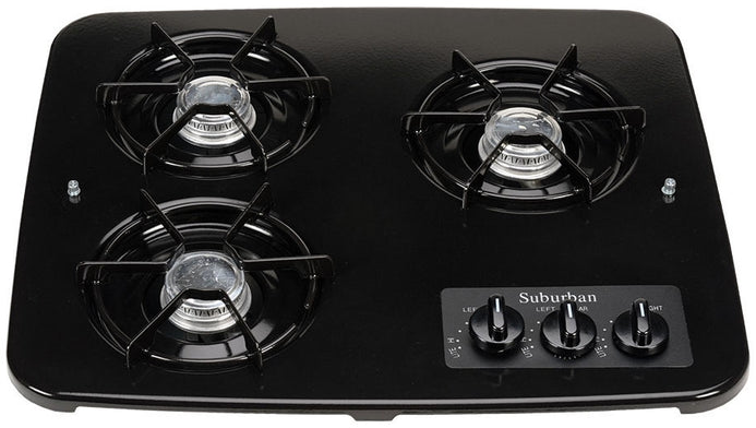 Airxcel (Suburban) RV Cooktop Burner Drop-In Cooktop 3 Burner, Black (2938ABK)