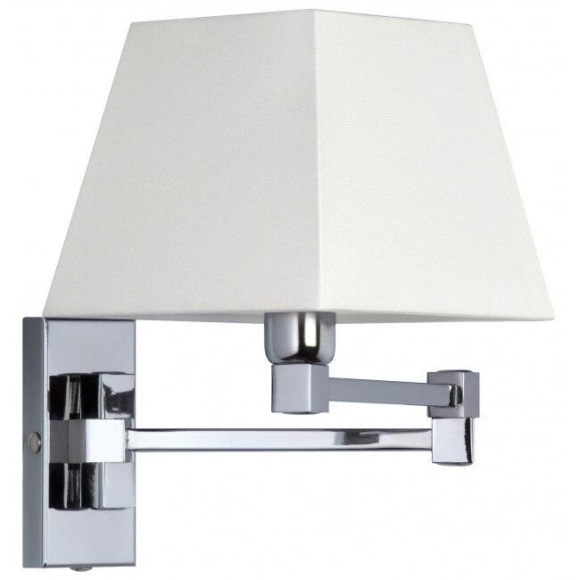 The Dominique is an IP20 halogen wall light with a basic lampshade. It has a fixed or jointed arm composed of chromed brass available with a chrome or gold finish. The fabric lamp shades are available with different color variations and it is available with either a 12V or 24V bulb.