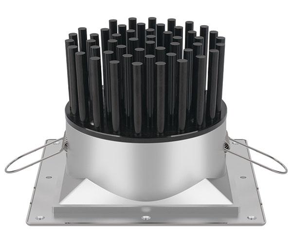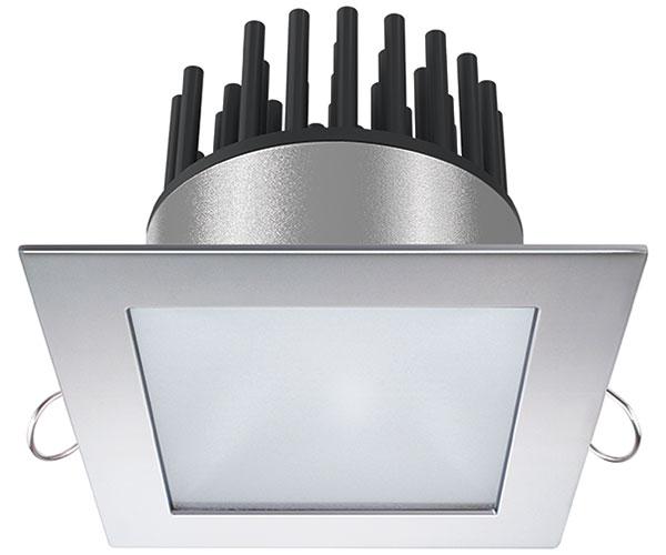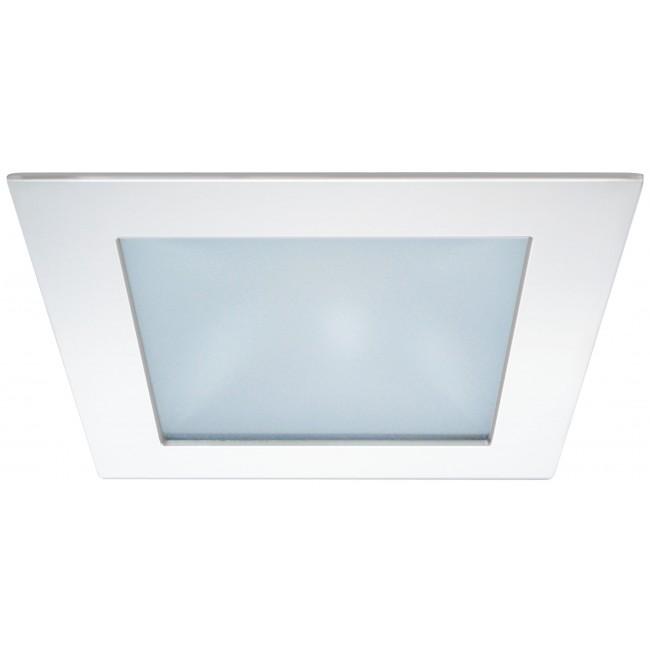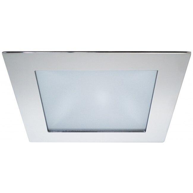 It has a 112mm square trim composed of AISI stainless steel and a frosted lens. It is available in warm and daylight LED bulb colors.