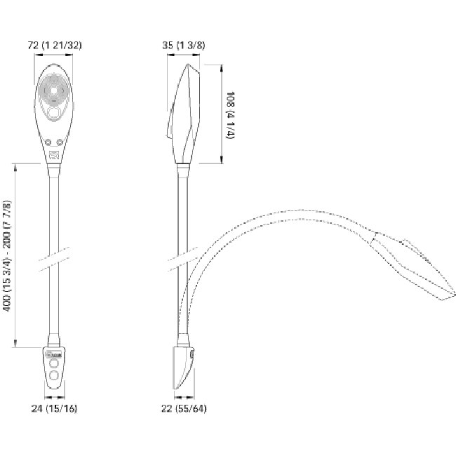 The Shark is an IP40 reading light with vertical mounting. It has a flexible neck that allows you to reposition the light to your convenience. It is available in either 300mm length or 675mm length. It is composed of composite materials and available with a white-red led bulb.