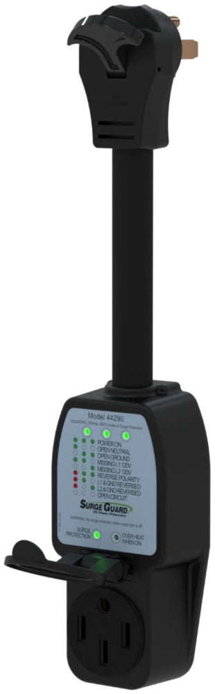 - Test for and Indicates Open Neutral, Open Ground, Reverse Polarity, Open Circuit/No Power, Missing Leg 1/Leg 2 Voltage, Surge Protection Status, Overheating Plug/Receptacle