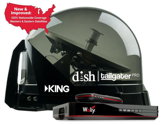 With KINGs next-level satellite antenna technology, your choice for satellite TV is clear. Bring the best entertainment to any outdoor event with the DISH Tailgater Pro TV System. The Tailgater Pro, a completely reengineered, fully automated, premium HD satellite TV antenna. The Tailgater Pro includes an ultramodern, clear cover - always know where your antenna is pointing, an industry first! Its simply better, by design. With the bundled DISH Wally HD receiver, enjoying your HD DISH satellite TV service is easier, faster and more reliable than ever before. The Tailgater Pro starts scanning faster and completes the scan more quickly than ever before. Includes 100% nationwide coverage, western and eastern satellites (western and eastern hybrid arc: 61.5, 110, 119 requires use of the included Wally receiver). Ideal for RVers, sporting and outdoor enthusiasts, tailgaters, long haul truckers or anyone with an active mobile lifestyle.