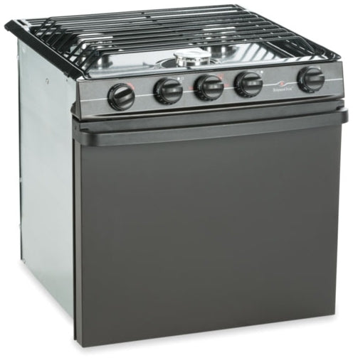Take the convenience of home cooking with you on the road. This range has a centralized high output burner and improved flame distribution. The one-piece porcelain grate construction gives more than adequate surface area for pots and pans.