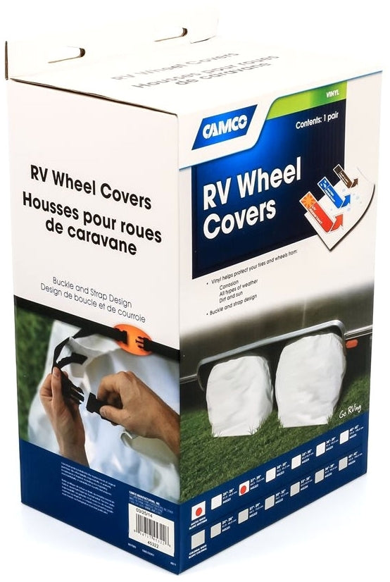 Camco RV Wheel and Tire Protector Cover, Vinyl, Set Of 2, 27"-29" Arctic White (4CS) (45322)