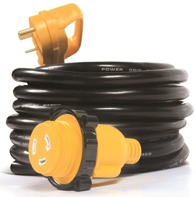 Camco RV Extension Cord 24-1074 25' Powergrip Cord With 30 Amp Male And 30 Amp Female Locking Adapter (55501)