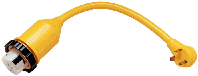 - This 30 Ampere Male 50 Ampere Female Pigtail Adapter Provides the Best Solution for Connecting Standard RV Cordsets to Various Types of Electrical Receptacles or Cords