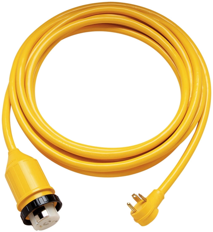 - This 25 Foot Pigtail Adapter has a 30 Ampere Male 50 Ampere Female Configuration and Allows the Connection of Standard RV Cordsets to Various Types of Electrical Receptacles or Cords