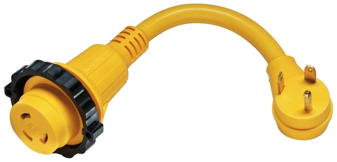 - This 30 Ampere Male, 30 Ampere Female Pigtail Adapter Allows the Connection of a Standard RV Cordset to Various Electrical Receptacles or Cords