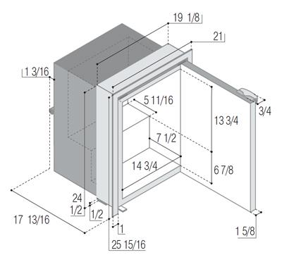 Vitrifrigo Front-Loading, Black Refrigerator w/freezer compartment C60IBD4-F-1 Adjustable Flange (internal cooling unit)