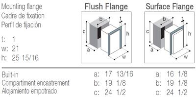 - Unique double purpose mounting flange (standard), for both partial built-in (Surface Flange) or total built-in (Flush Flange);