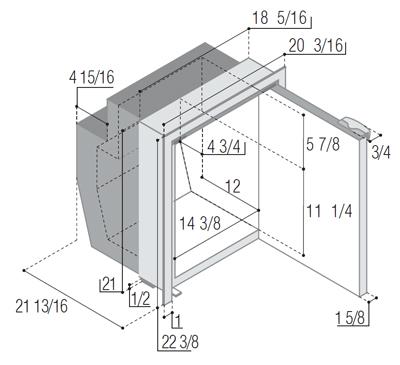 Vitrifrigo Front-Loading, Black Refrigerator w/freezer compartment C62IBD4-F-1 Adjustable Flange (internal cooling unit)