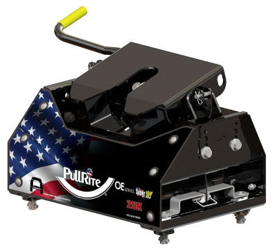The #1800 OE Puck Series Super 5th carries a heavier maximum tow rating of 25K Designed specifically for 2020 GM long bed trucks with pucks, but usable with short bed trucks with the right truck/trailer combination for those who don't mind making a larger turning radius to avoid cab contact. But if you want a true solution to short bed cab clearance limitations, check out SuperGlide for a fully automatic, sliding hitch. The mounting post assemblies are completely removable for easier removal and installation of the hitch. Simply unpin handles, rotate 1/4 turn outward and lift the hitch out of the bed. NO TOOLS NEEDED The #1800 is made from high quality American steel and premium hardware, like the use of castle nuts that allow for finer adjustments of the OE puck handles for ease of installation and fit See how OE Puck hitches work. The hitch plate is the first connection to your trailer. Ours have a fully automatic locking jaw, is the only self-locking handle on the market and has no secondary locking devices to engage. Its dual articulating hitch head moves side-to-side and front-to-back, giving you a smoother ride as you travel over bumpy roads. Even more important, PullRite's hitch plate allows you to couple/uncouple your trailer on uneven ground, whereas most other brand of hitches require you to jack up/shim your truck and trailer to be level with one another to prevent a false hookup or "high hooking" And removing PullRite's automatically-locking hitch plate is done by pulling two pins and clips, unlike other hitches on the market that require tools for removal.