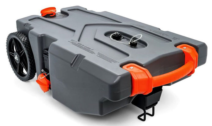 Large, Heavy-Duty, No-Flat Wheels with Bearings Make Transport Smooth and easy and Removable Steel Tow Adapter Allows You to Easily Roll the Tote Tank Like a Suitcase, or Tow it Slowly Behind a Golf Cart or Truck