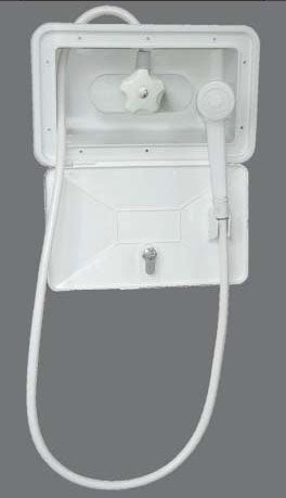 The American Brass RV Exterior Shower Box White With Hose And Handle (SHWRBOX-1-WHT)