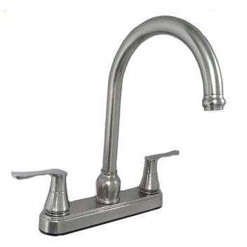 The American Brass RV Kitchen Faucet 8" Brushed Nickel Goosneck Spout With Saber Handles (U-YNN800GSN-DH3-25)
