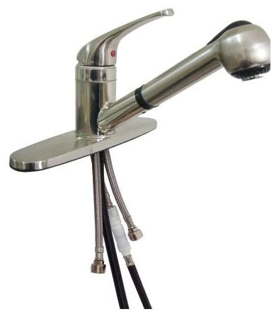 The American Brass RV Kitchen Faucet 8" Brushed Nickel Single Lever With Pull Out Spout And Spray (SL1000N)