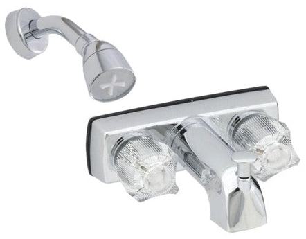 The American Brass RV Tub/Shower Faucet Diverter 4" 2-Valve Div Brass Underbody Chrome Finnish Empire (J50)