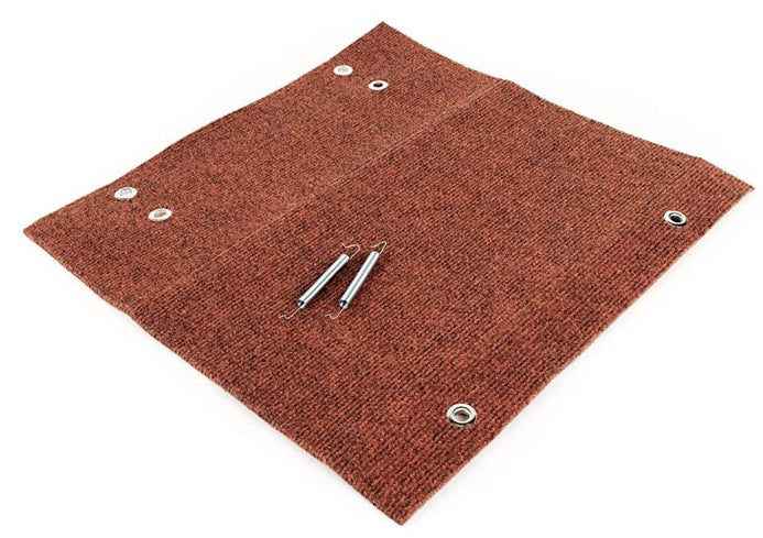 Camco Brown RV Wrap Around Step Rug adjusts to fit almost any RV step. Just wrap around your existing RV step and hook springs into the holes that fit your step. No screws, glue or tools needed. Springs are unique in that the hook ends are turned back making installation easier. Helps to keep your RV clean by cutting down on tracked-in dirt. For manual or electric RV steps. 23" wide.