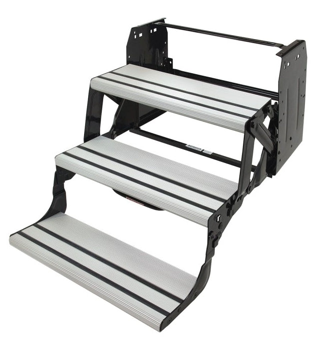Upgrade your RV with the sleek, Euro-style Alumi-Tread hybrid step featuring strong, proven steel linkage and attractive aluminum treads with anti-slip rubber grooves for excellent traction. Lightweight aluminum step treads resist rust, ensuring long-lasting durability. The Alumi-Tread Step is available in triple and quad configurations, and provides both style and functionality. Alumi-Tread lends a clean, modern appearance to your RV and consistent, smooth operation at an attractive price point.