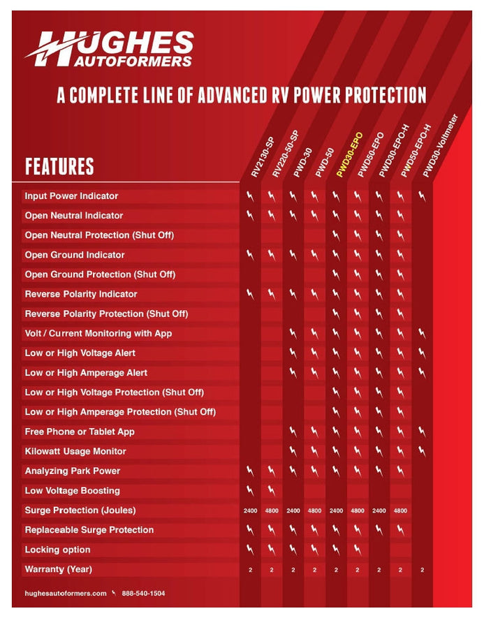 Hughes RV 4 Per CS 30 AMP Power Watchdog Surge Protector With Emergency Auto Shut Off (PWD30-EPO)