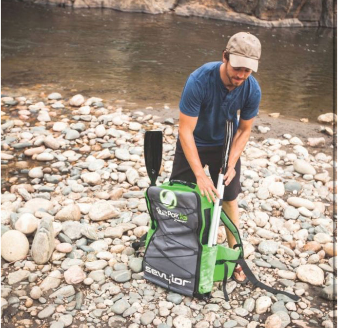 This inflatable watercraft works just like a traditional kayak, except when you're ready to pack up, it folds up into the integrated backpack and it fits inside any car or truck. Features tracking fins for easier steering and includes a paddle and dual action hand pump.