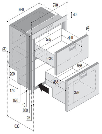 The Stainless Steel Drawer Series has been completely updated in both design and function. The stylish new square edge door design with the Steelock positive latch handle has the added functionality of a vent position for air circulation during periods of non-use preventing mould or bad odours in the fridge. The single section, stainless steel fitting frame allows the fridge to be securely fixed either with the door flush or proud of your furniture and has integrated vent slots to improve air flow and the efficiency of the cooling unit behind.